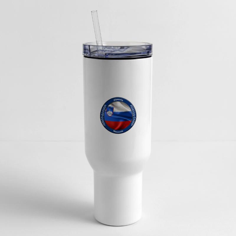- Travel tumbler with lid and handle